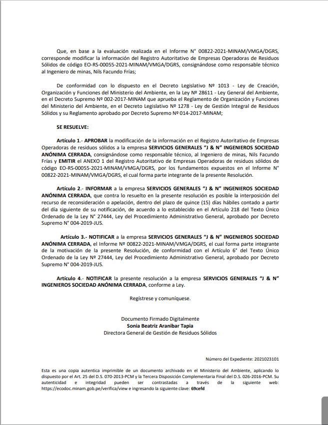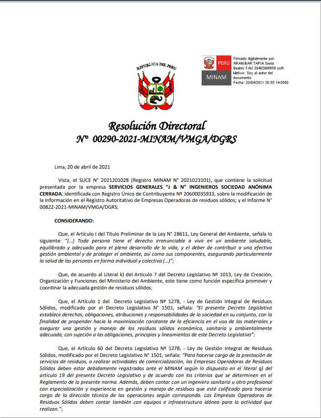 Somos una Empresa Operadora de Servicios de Residuos Sólidos debidamente registrada y autorizada por el MINISTERIO DEL AMBIENTE, compuesta por profesionales especializados y un gran equipo de colaboradores debidamente capacitados.